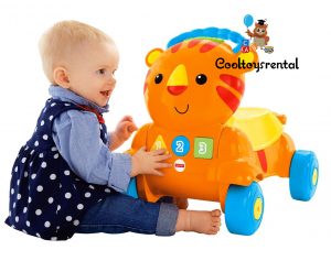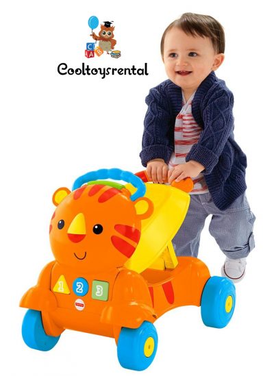 Two grow-with-me modes encourage baby to use and strengthen developing gross motor skills! In walker mode, the easy-grasp handle helps baby stand and balance, and the wide wheel base can steady first steps. When baby is ready to ride, the walker converts to a ride-on for roll-along fun. Whether walking, riding, or batting the roller bar on the tiger’s head, baby’s actions are rewarded with fun sounds and music!