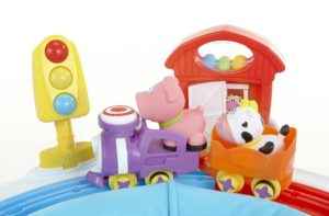 The Discover & Learn Activity Center is designed to grow with your infant and provide fun and interactive play every step of the way! There are over 12 different entertaining activities, including a battery operated train that “chugs” along the tracks, encouraging baby to follow and play. The activity center provides your baby with plenty of exercise to strengthen legs, back and neck muscles, as well as hours of visual and interactive entertainment. The train and tracks can even be removed so the play continues when your child gets older!