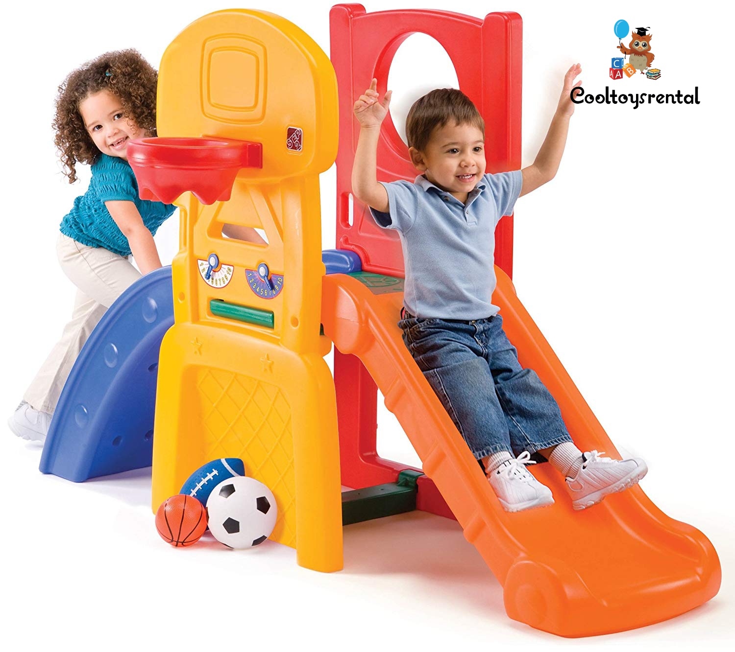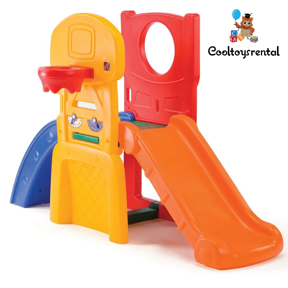 This Step2 Climber is guaranteed to provide endless playtime opportunities for your little athlete. Designed to keep children active, this climber features activities such as basketball, soccer, rock wall, football toss and slide. This compact outdoor jungle gym is perfect for tots that love sports! KHUSUS INDOOR.